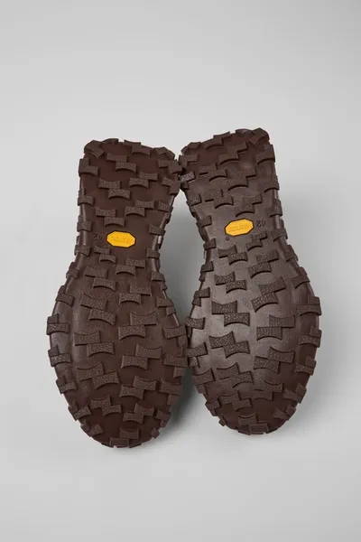 Multicolored recycled PET and TPU film men’s ankle boots with OrthoLite® Recycled™ removable footbeds and Vibram outsoles (30% rubber, 70% EVA).