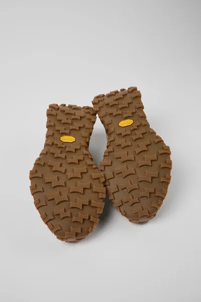Multicolored textile/nubuck women’s sneakers with recycled polyester linings, recycled OrthoLite® footbeds, and Vibram outsoles.