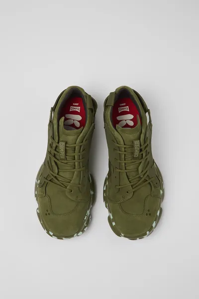 Green nubuck/textile men’s sneakers with lace-up closures, recycled OrthoLite® footbeds, and XL EXTRALIGHT® Organix™ 3.0 outsoles with 30% biocircular components.