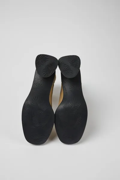 Beige leather and recycled PET women’s boots with OrthoLite® Recycled™ non-removable footbeds, and rubber and ABS outsoles.