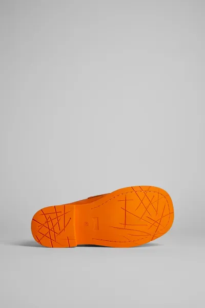 Orange leather padded loafers with rubber outsoles.