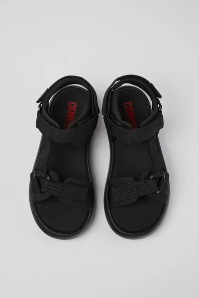 Black men’s sandals with recycled polyester neoprene, ankle straps, and cushioning EVA footbeds, and XL EXTRALIGHT® Organix™ 3.0 outsoles with 30% biocircular components.