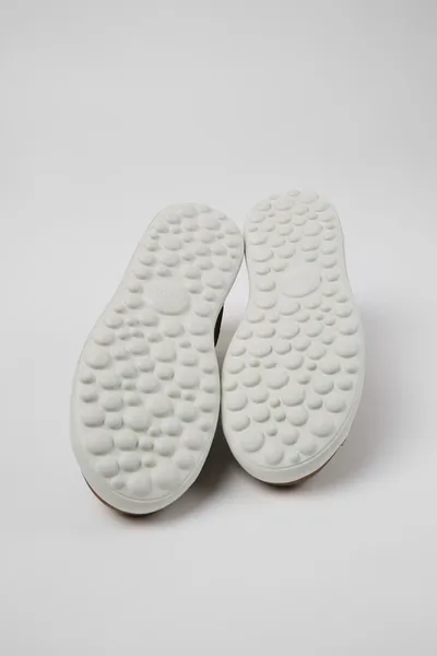 Brown leather men’s sneakers with removable PU footbeds and EVA outsoles.