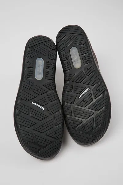 Burgundy leather and recycled PET women’s sneakers with GORE-TEX technology, OrthoLite® Recycled™ footbeds, EVA midsoles, and Michelin rubber outsoles (27% natural).
