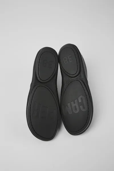 Black calfskin ankle boots for women with removable EVA footbeds and rubber outsoles (20% recycled).
